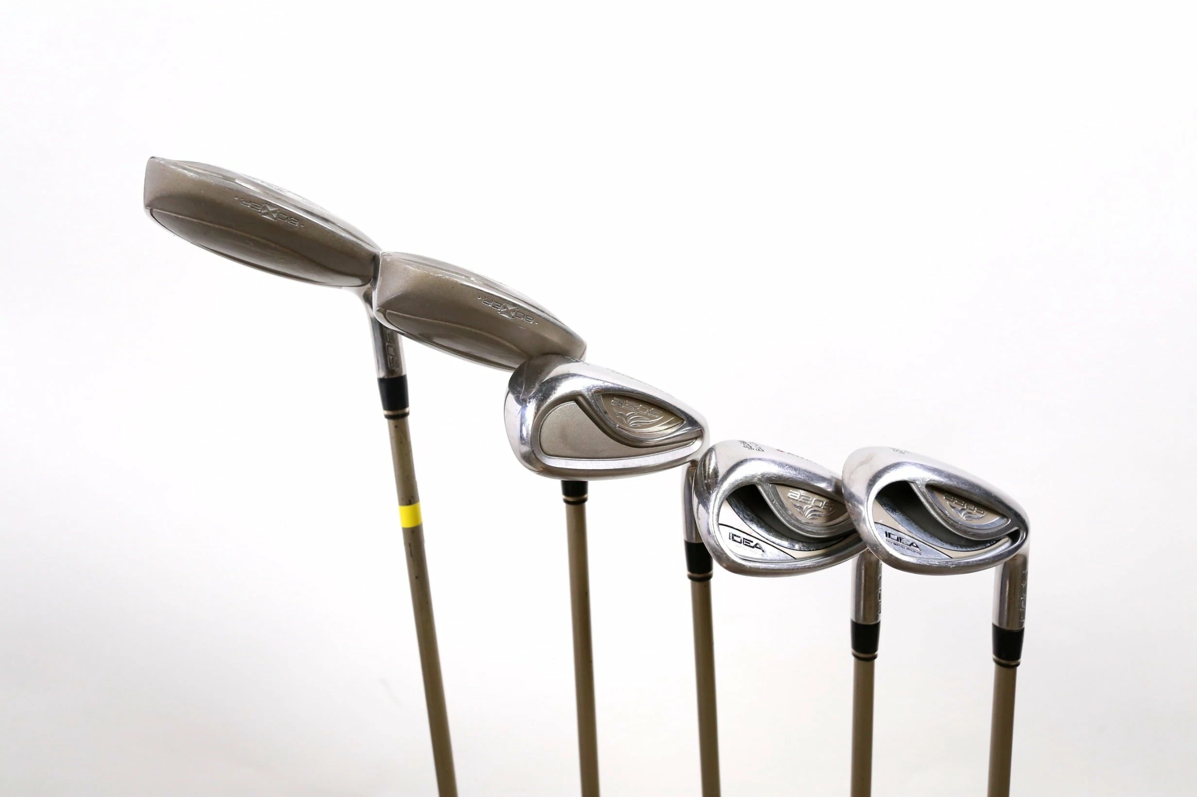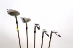 GOOD – This set is in good condition. Wear and markings located around the heads of the clubs and within the faces of the clubs due to normal play and storage. Club shafts and grips are all fully attached, and in good condition. See pictures for more detail