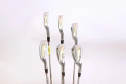 VERY GOOD – This Iron Set is in very good condition. There is wear around the heads and on the faces of the clubs from use and play. There are also very small markings and scratches along the shafts from normal use and storage. The grips are in good condition with average wear from handling and storage. The shaft flex was loosely determined using a deflection board. Please see pictures provided for more details.