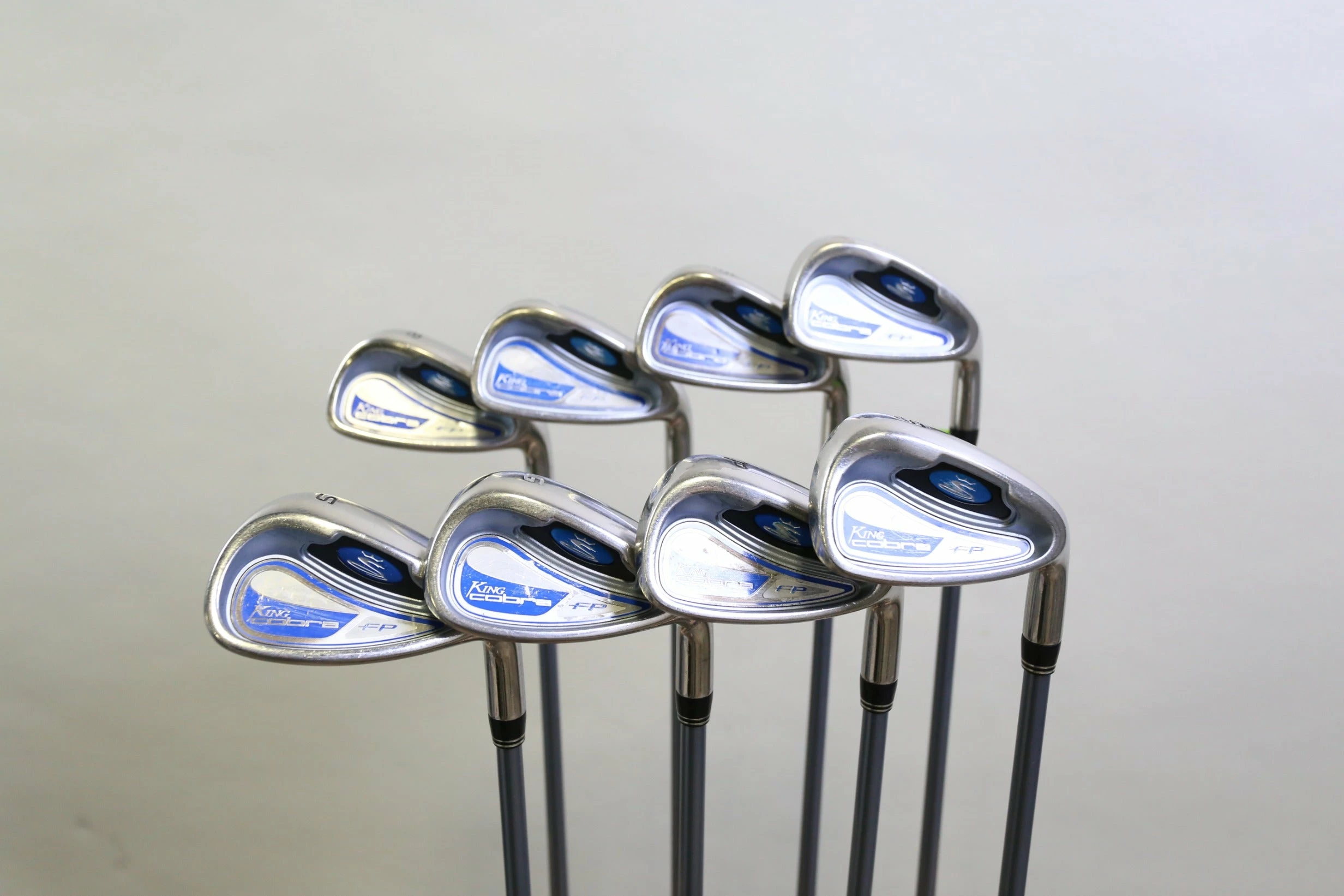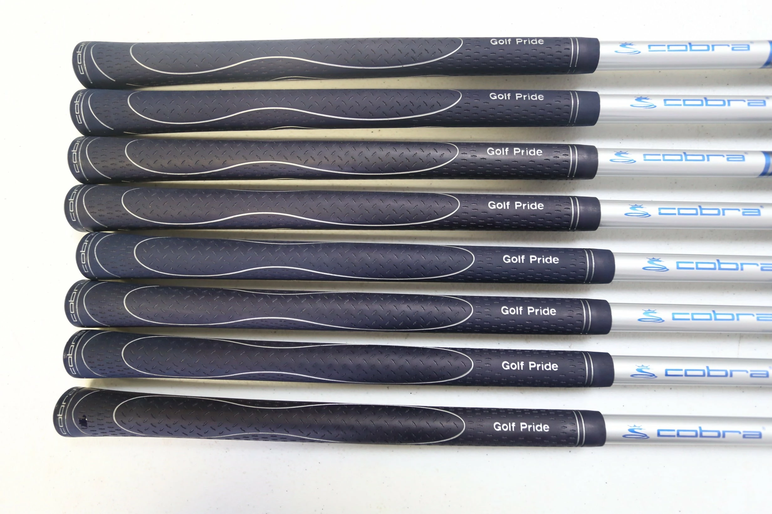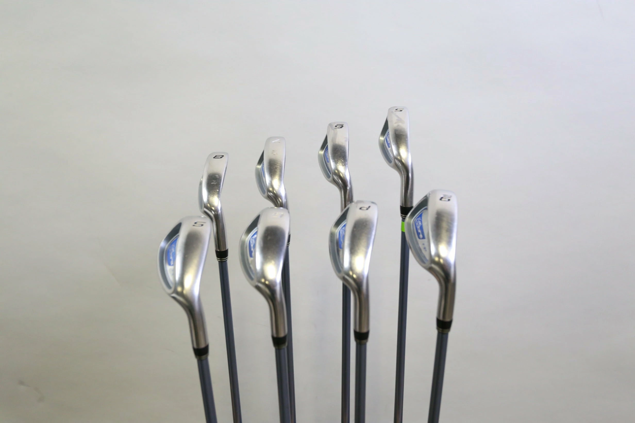 GOOD – This iron set is in good condition. There is average wear around the heads and on the faces of the clubs from regular use. There are very small markings and scratches along the shafts from normal use and storage. The grips are in good condition with some wear from regular use and storage. Please see pictures for more details.