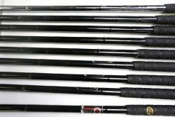GOOD – This iron set is in good condition. There is average wear around the heads and on the faces of the clubs from regular use. There are very small markings and scratches along the shafts from normal use and storage. The grips are in good condition with some wear from regular use and storage. Please see pictures for more details.