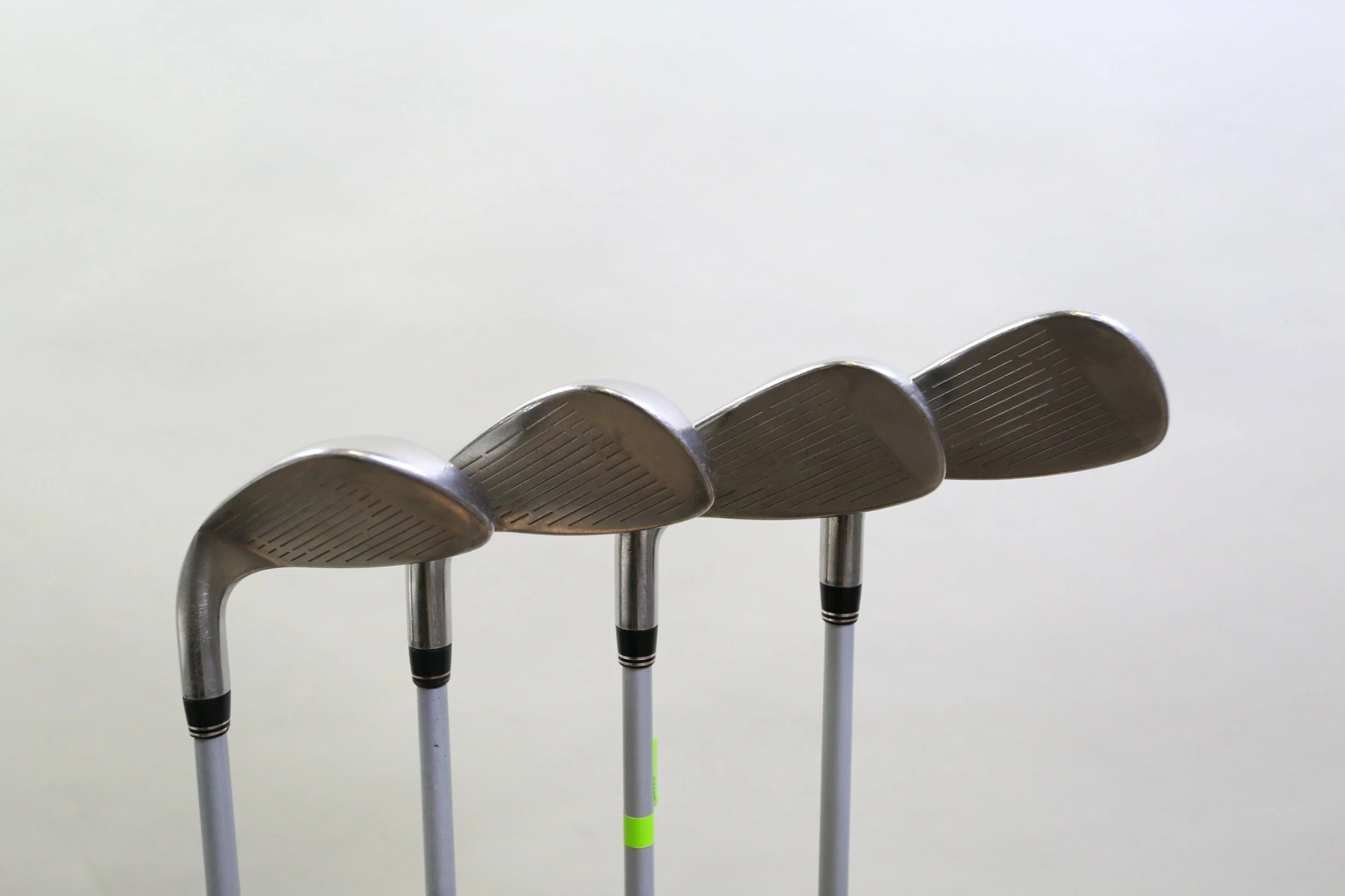 GOOD – This iron set is in good condition. There is average wear around the heads and on the faces of the clubs from regular use. There are very small markings and scratches along the shafts from normal use and storage. The grips are in good condition with some wear from regular use and storage. Please see pictures for more details.
