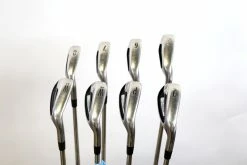 GOOD – This iron set is in good condition. There is average wear around the heads and on the faces of the clubs from regular use. There are very small markings and scratches along the shafts from normal use and storage. The grips are in good condition with some wear from regular use and storage. Please see pictures for more details.