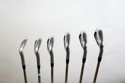 GOOD – This iron set is in good condition. There is average wear around the heads and on the faces of the clubs from regular use. There are very small markings and scratches along the shafts from normal use and storage. The grips are in good condition with some wear from regular use and storage. SET IS MISSING 7 IRON. Please see pictures for more details.