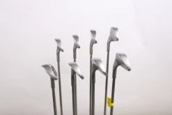 GOOD – This iron set is in good condition. There is average wear around the heads and on the faces of the clubs from regular use. There are very small markings and scratches along the shafts from normal use and storage. The grips are in good condition with some wear from regular use and storage. Please see pictures for more details.