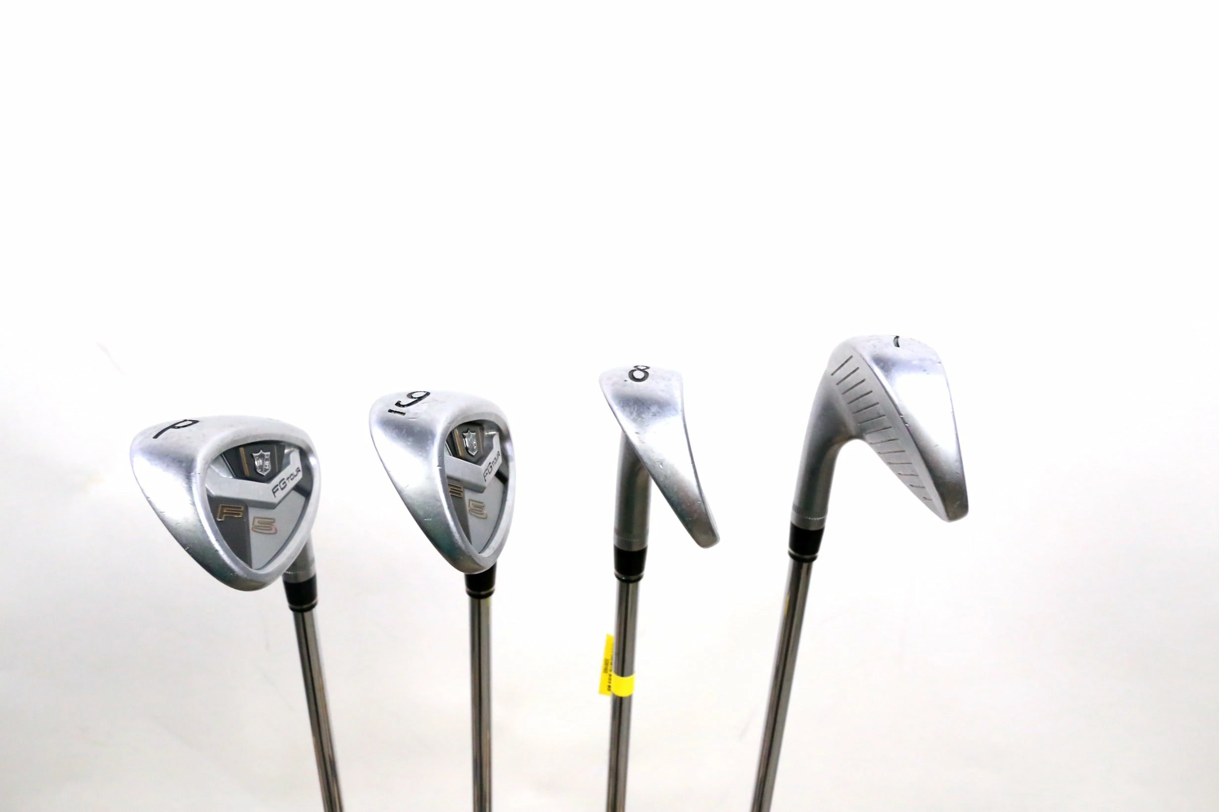 GOOD – This set is in good condition. Wear and markings located around the heads of the clubs and within the faces of the clubs due to normal play and storage. Club shafts and grips are all fully attached, and in good condition. See pictures for more detail